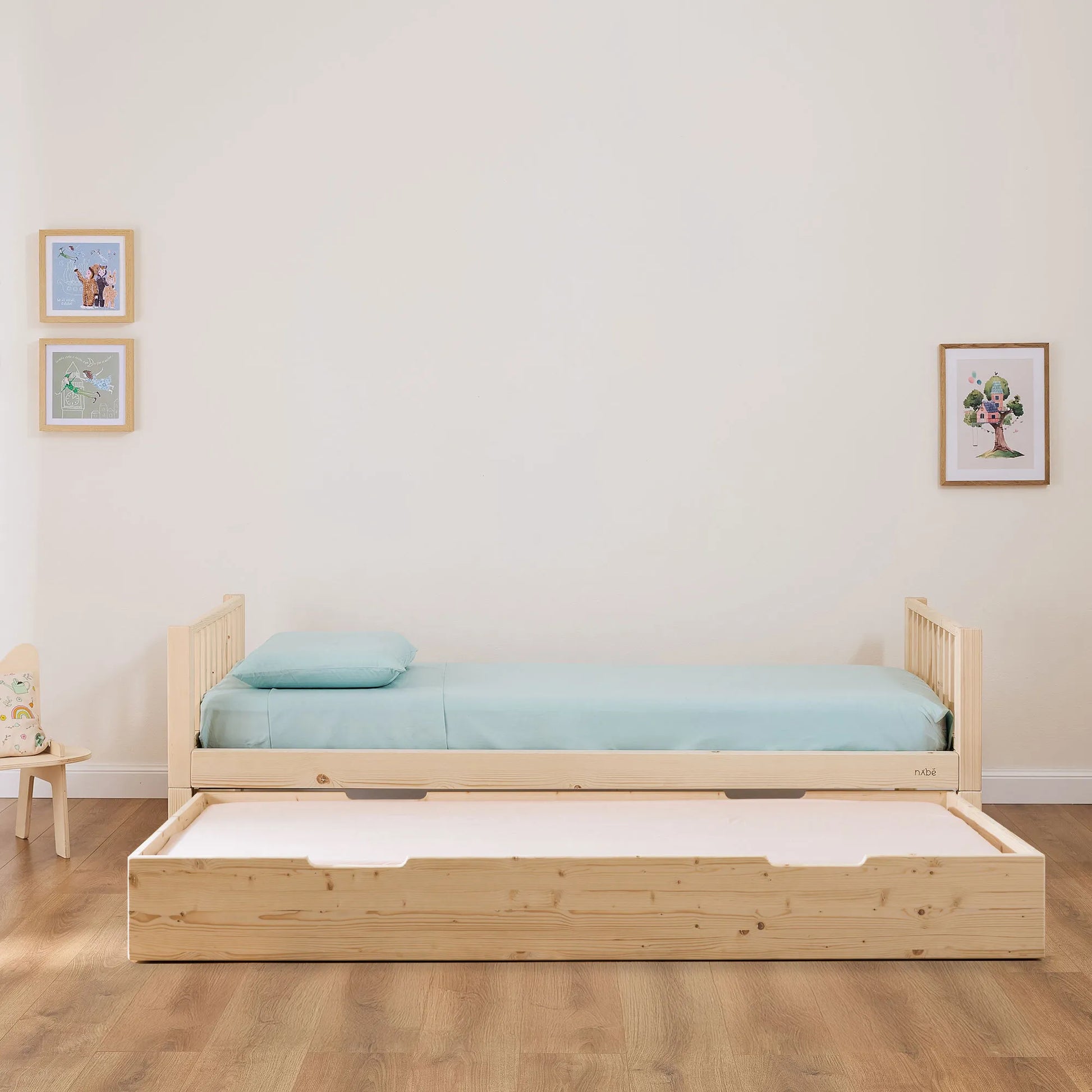 Die ausziehbare Bettschublade für das Kinderbett zero+ ist in zwei Größen erhältlich (Maße in cm):
