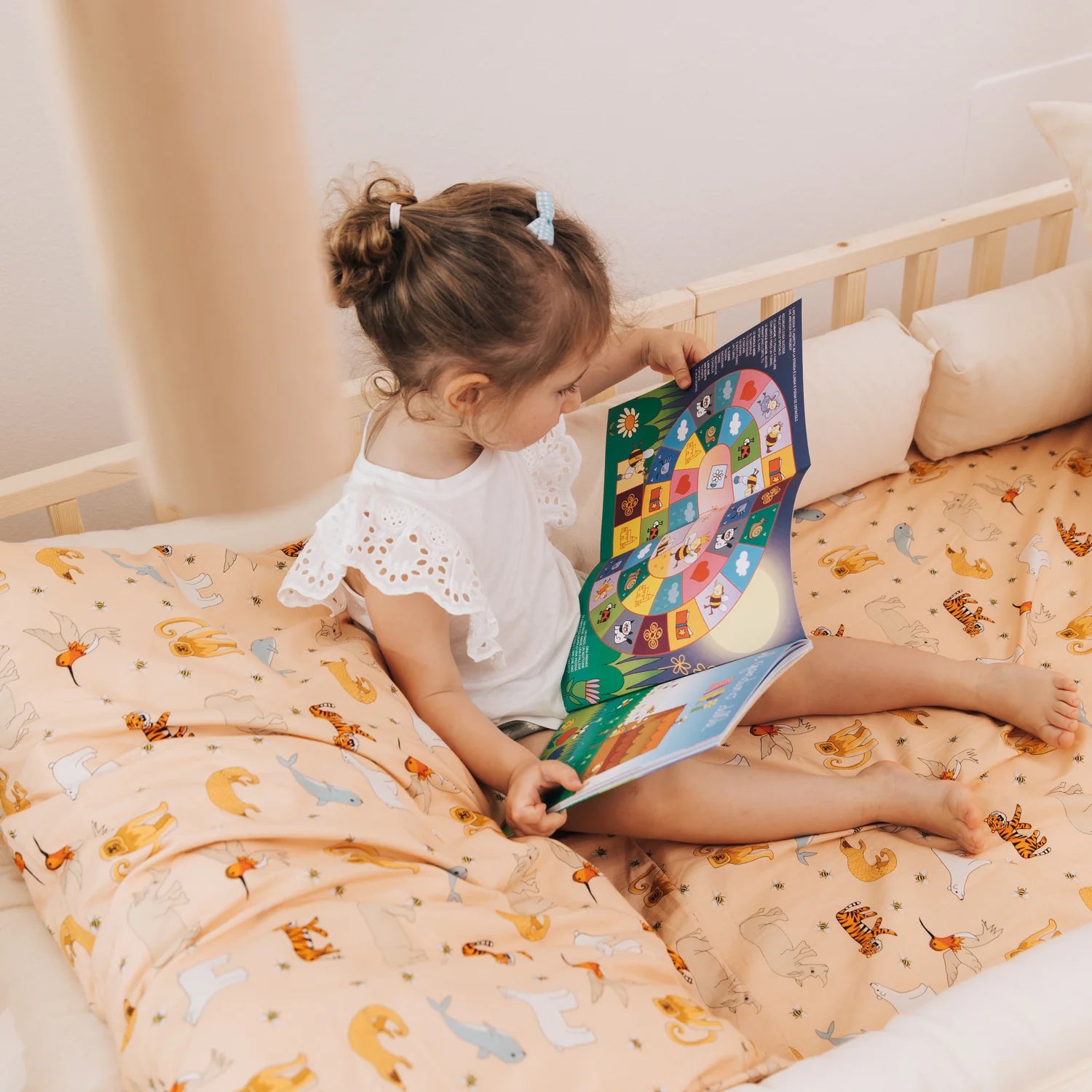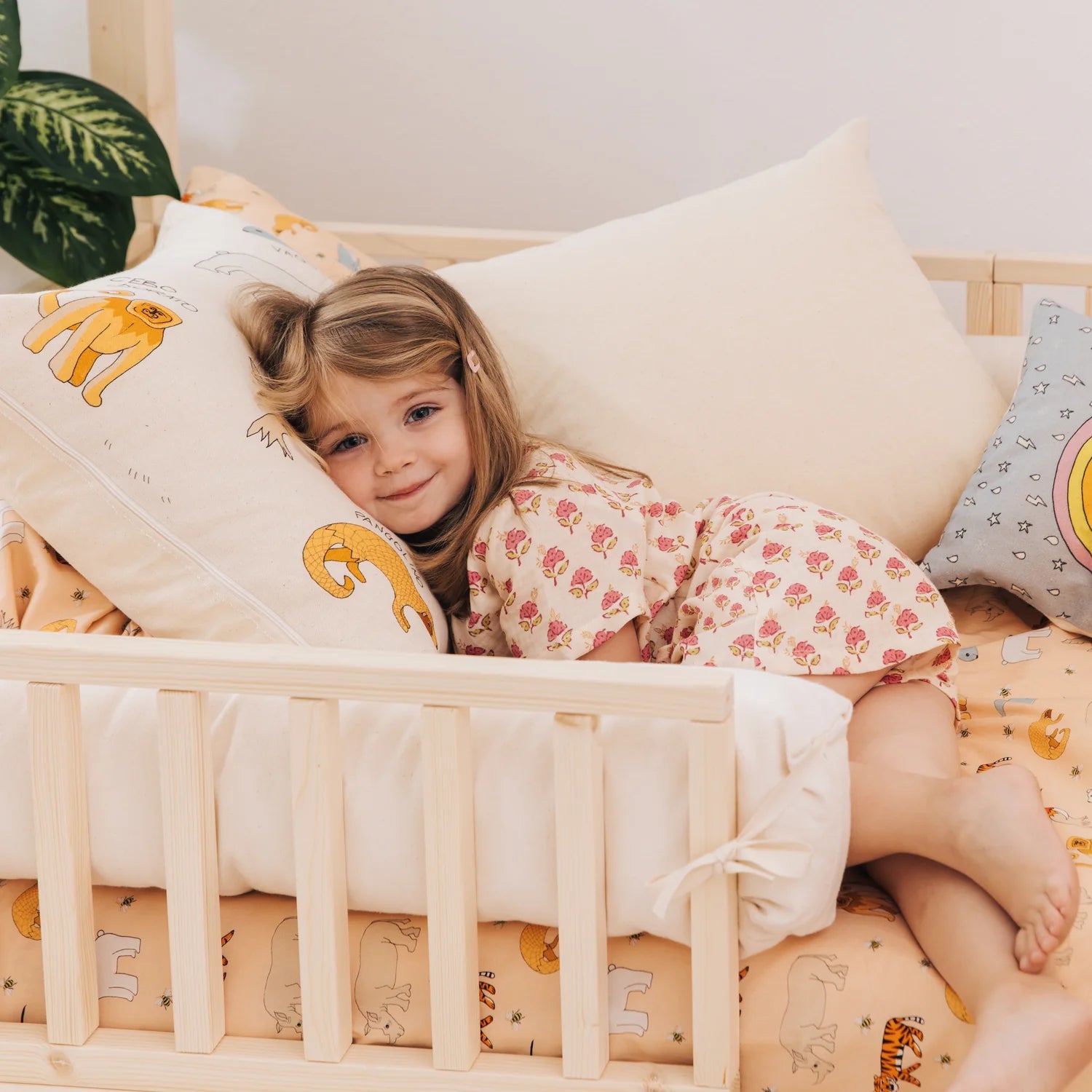 Vervollständige dein Montessori Bett von nabè mit einem Bettwäsche-Set aus frischer Perkal-Baumwolle.
