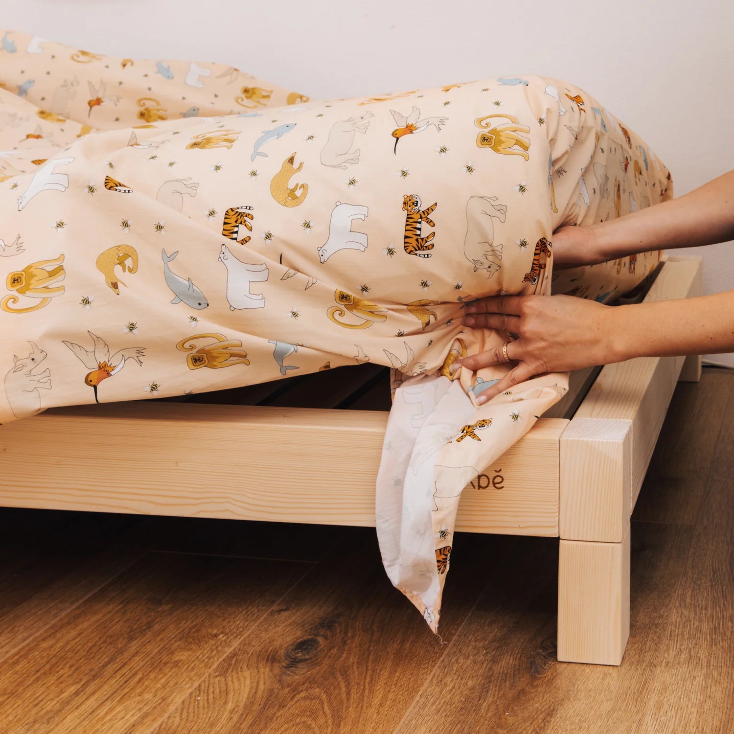 Vervollständige dein Montessori Bett von nabè mit einem Bettwäsche-Set aus frischer Perkal-Baumwolle.