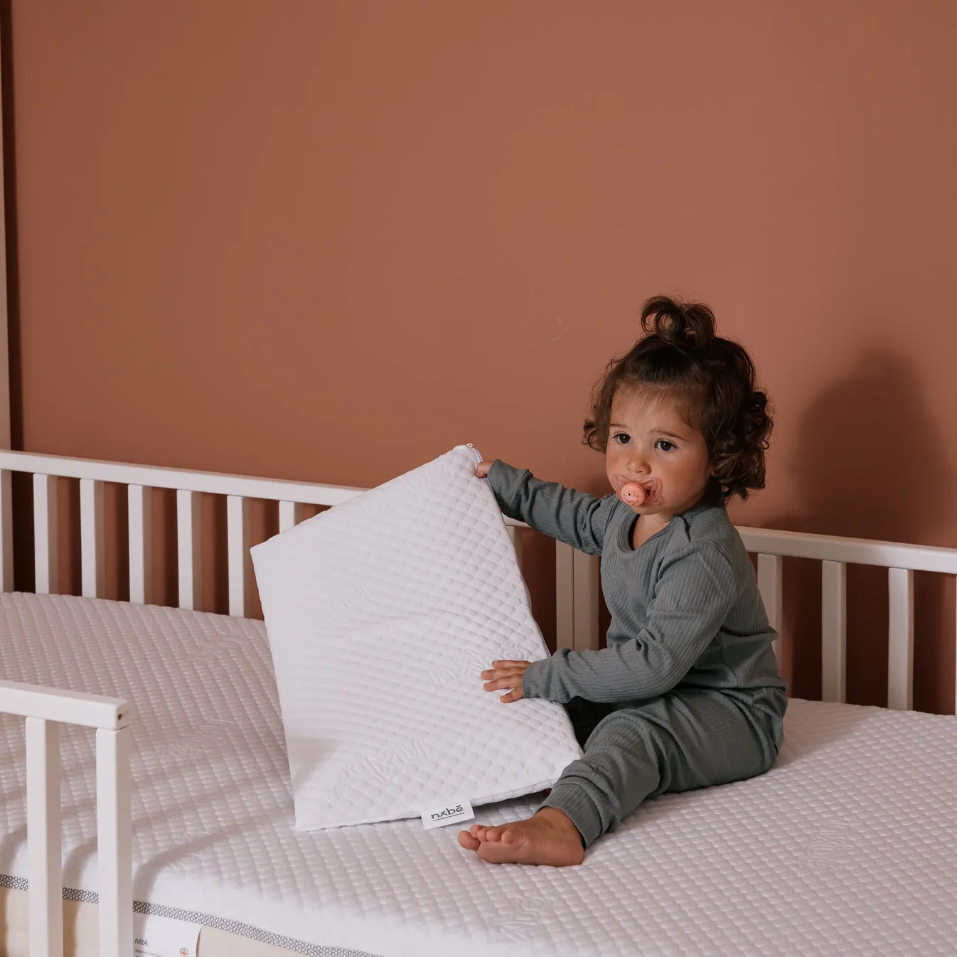Das Kissen-Set zero+ Plin besteht aus einem ökologischen Schaum auf Wasserbasis, der speziell von Nabè entwickelt wurde, um die Schlafqualität von Kindern bestmöglich zu unterstützen.