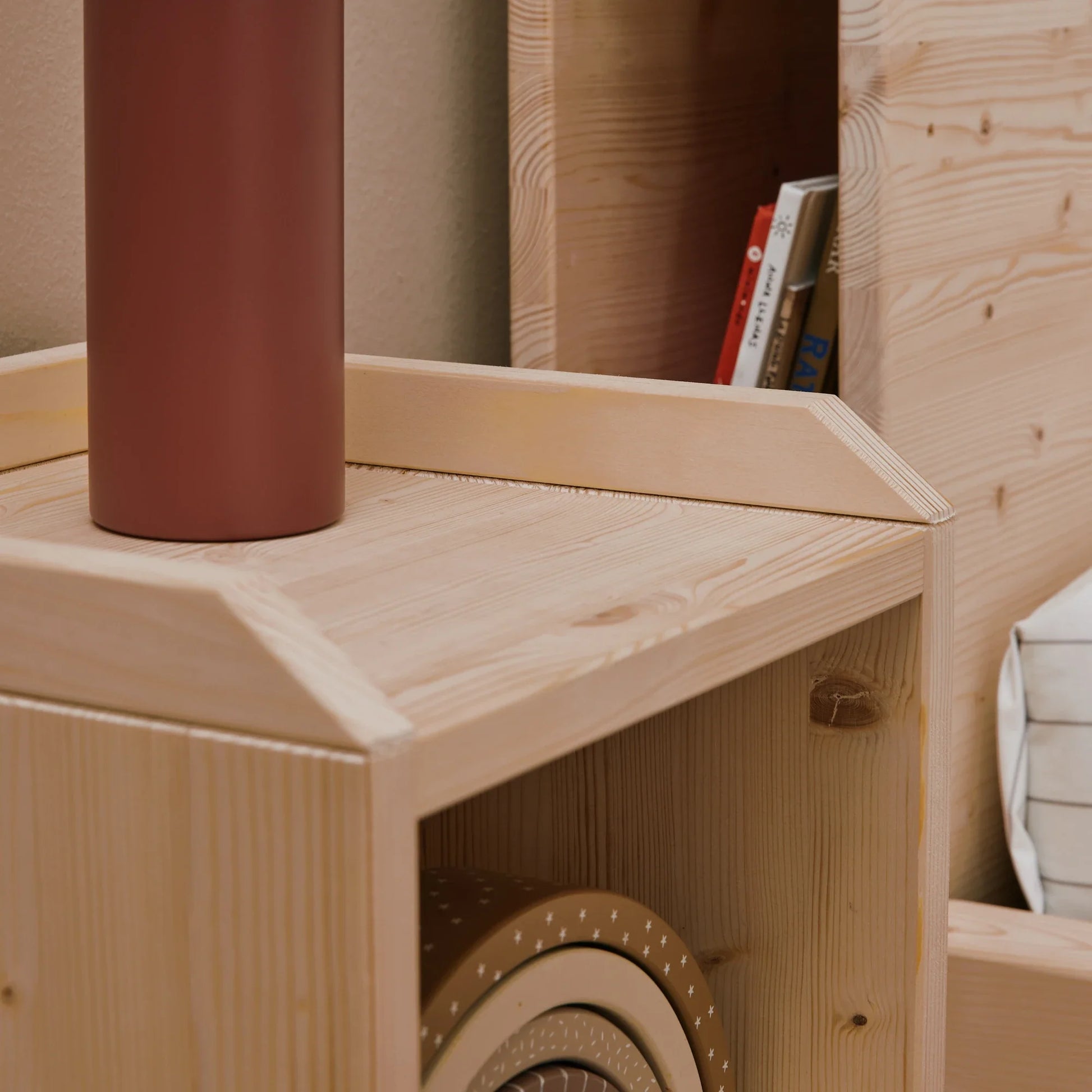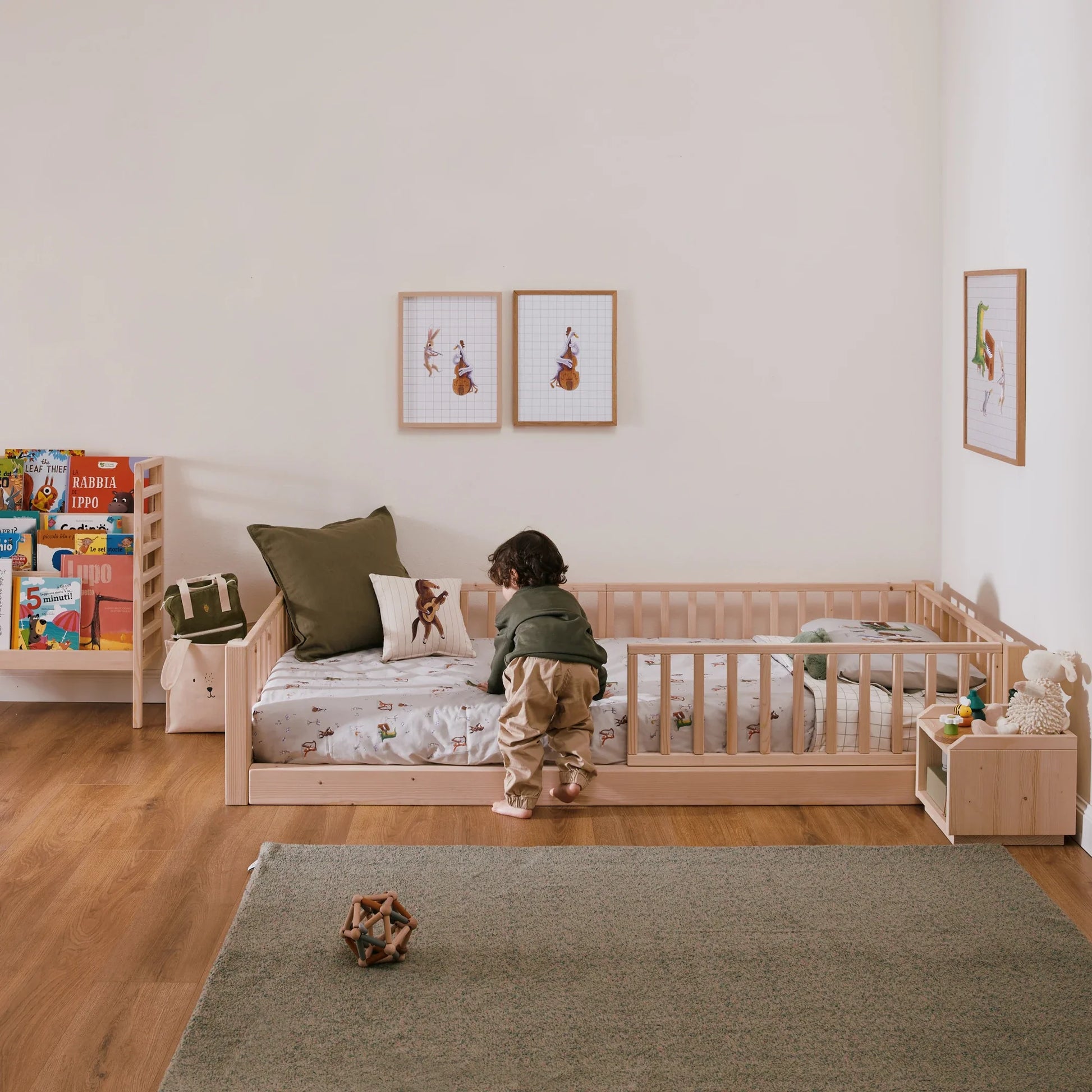 Ein Möbelstück, das das zero+ Kinderzimmer harmonisch ergänzt und perfekt mit den anderen Nabè Möbeln zusammenpasst – wie dem Montessori Bett zero+ und der mitwachsenden EverGrow Bücherregal.