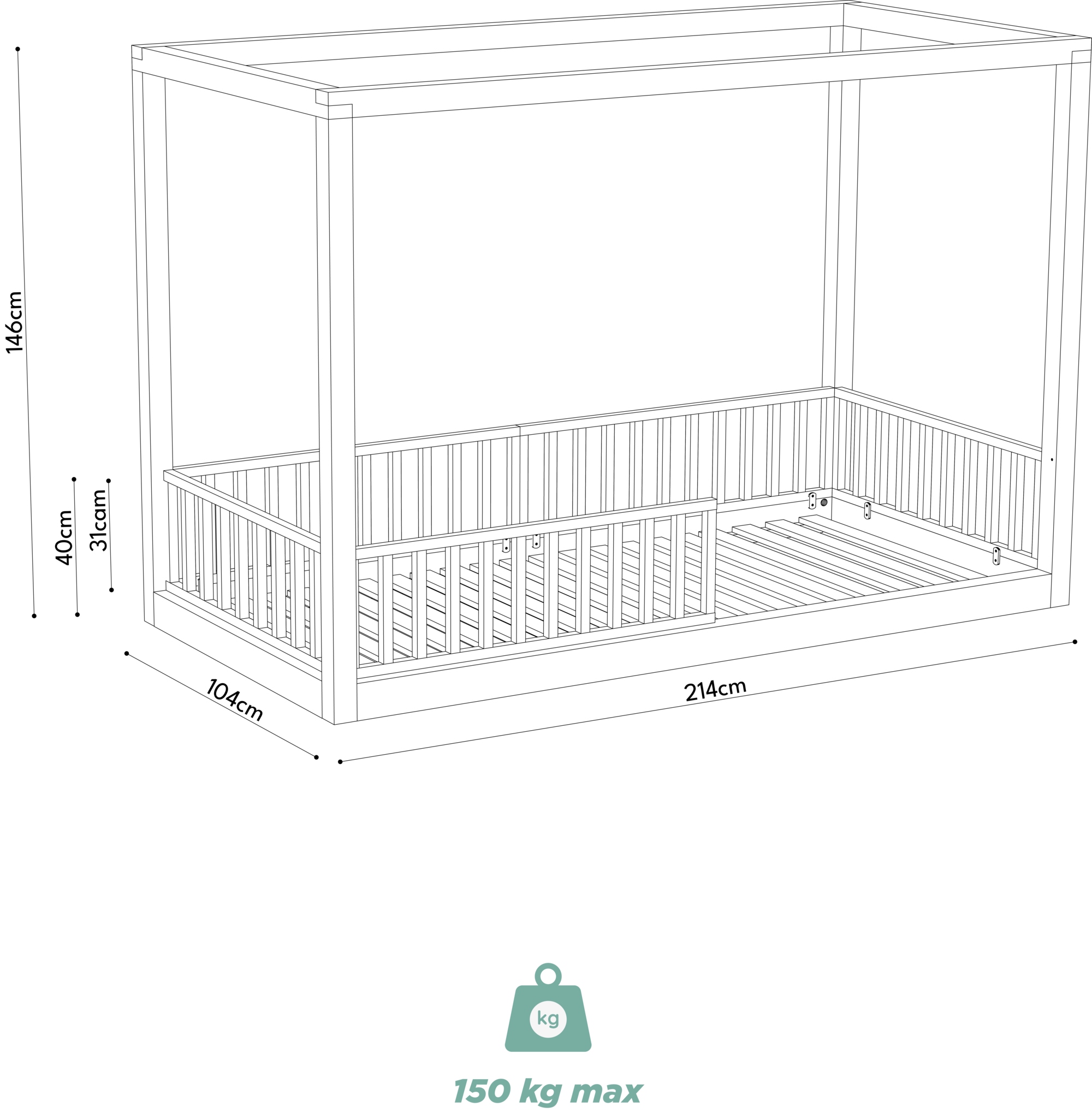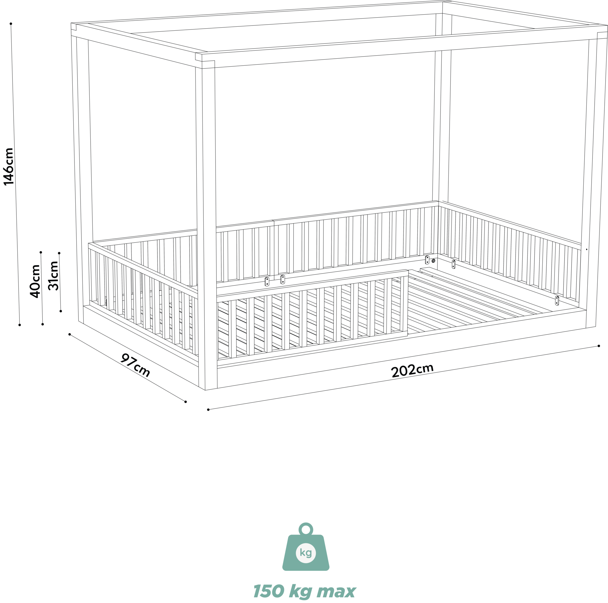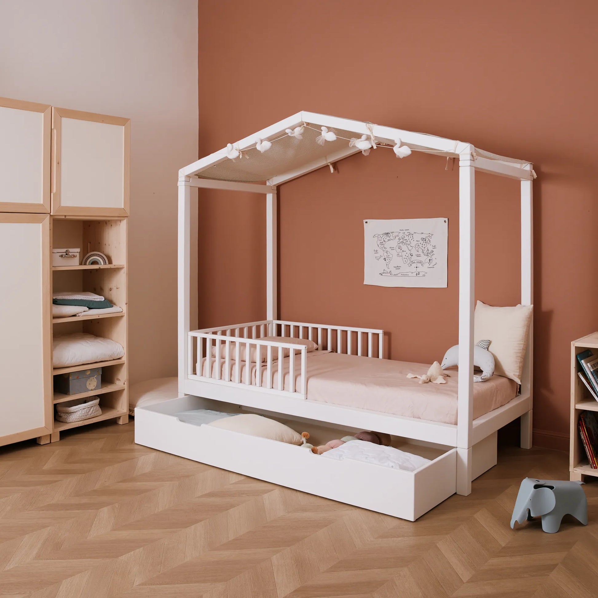 Inspiriert durch die Montessori – Prinzipien ist das Montessori Bett zero+ Dream mit zwei austauschbaren Lösungen für das Dach des Bettes (Dach/Baldachin) und in 3 Versionen verfügbar: