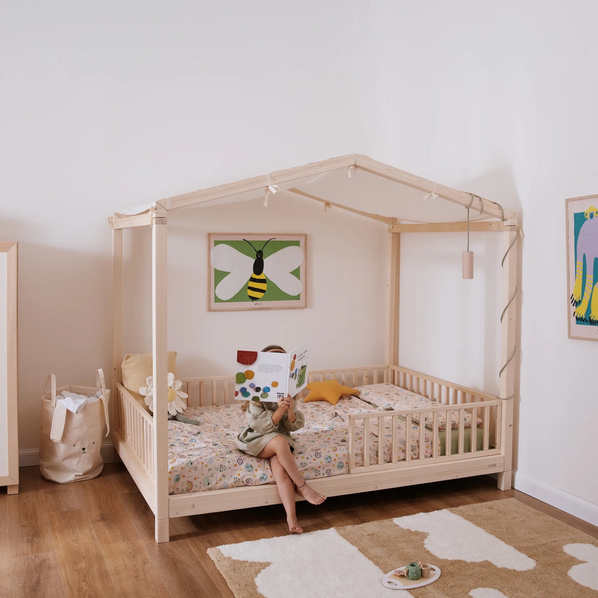 Inspiriert durch die Montessori – Prinzipien ist das Montessori Bett zero+ Dream mit zwei austauschbaren Lösungen für das Dach des Bettes (Dach/Baldachin) und in 3 Versionen verfügbar: