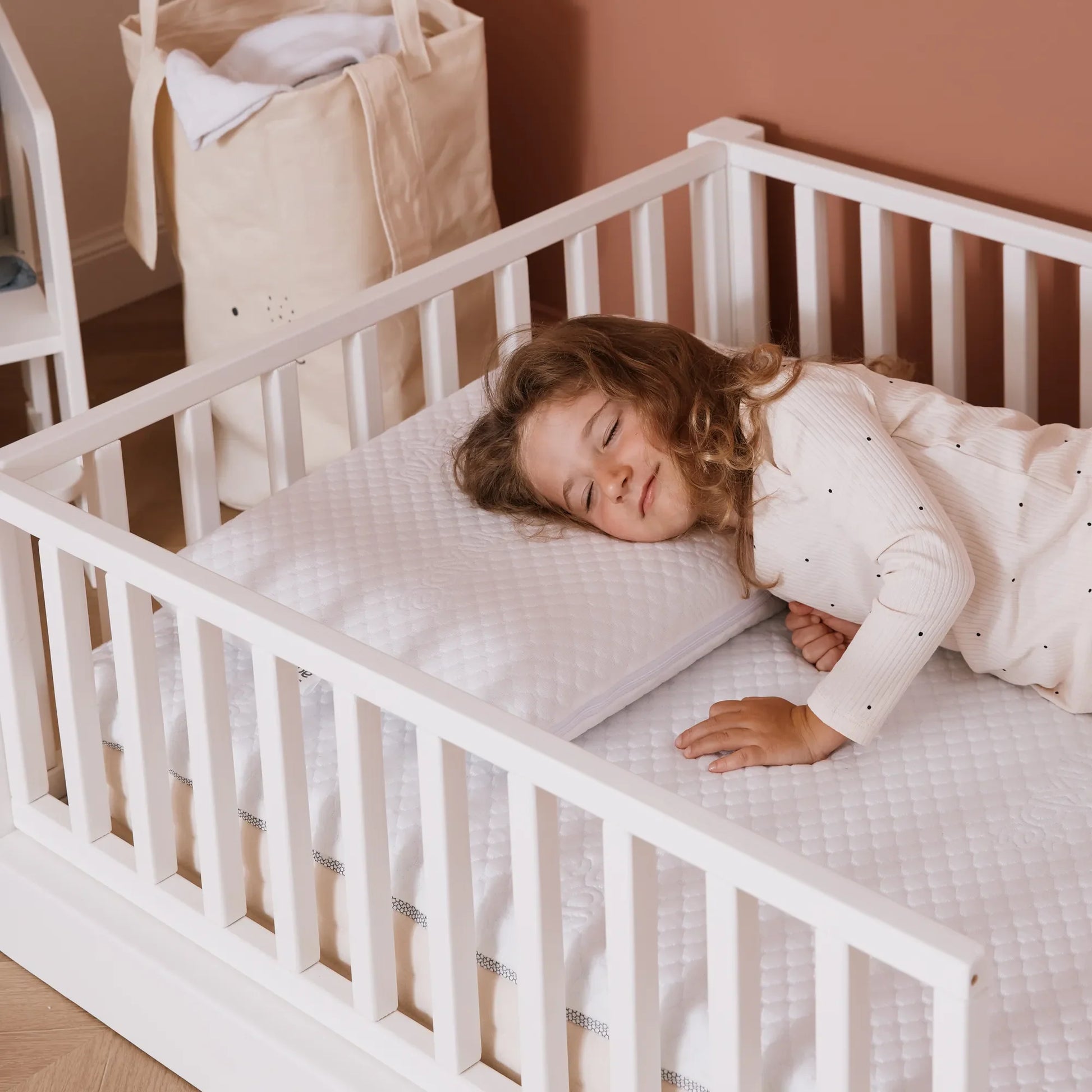 Das Kissen zero+ Camomilla ergänzt das Montessori Bett zero+ und die nabè Matratze perfekt.