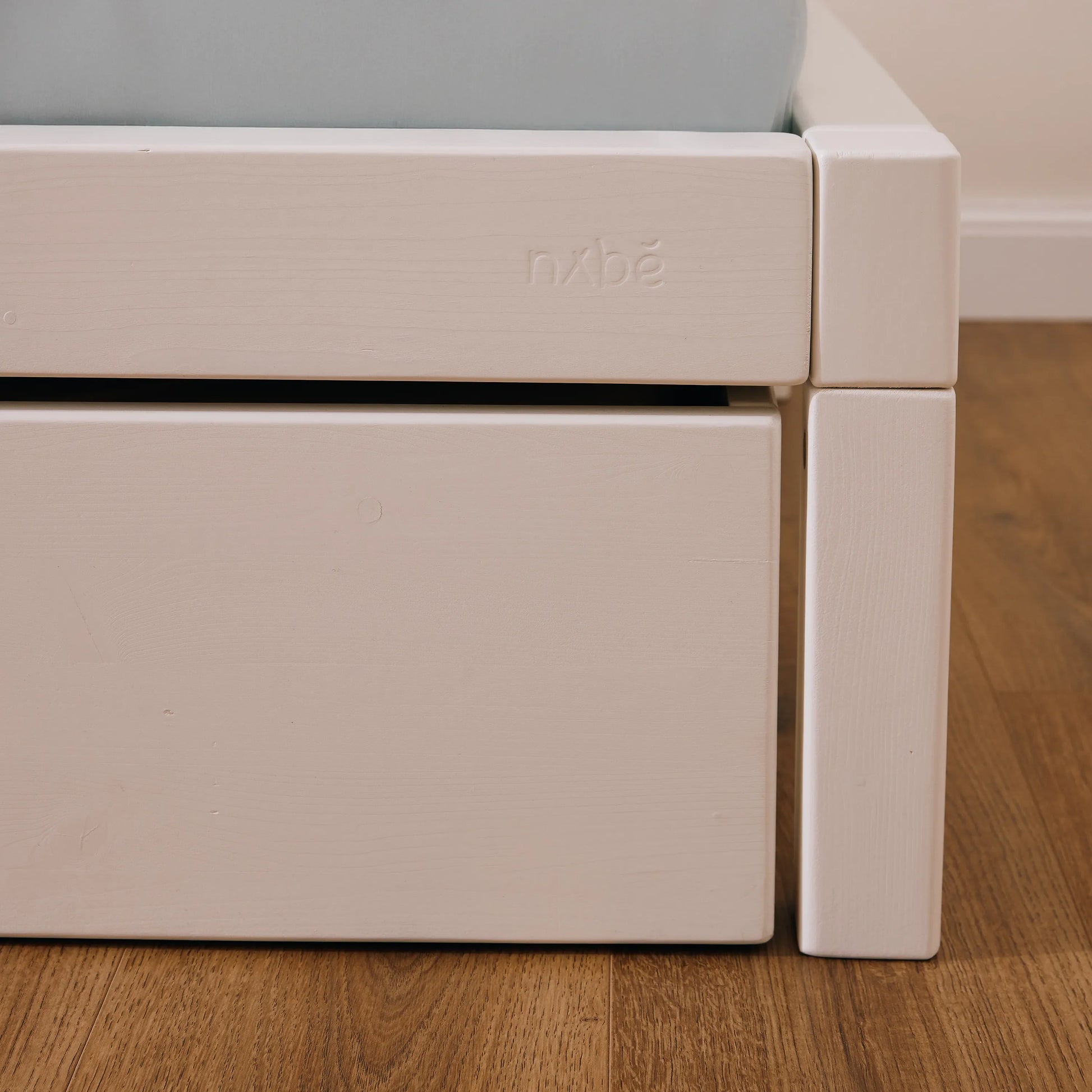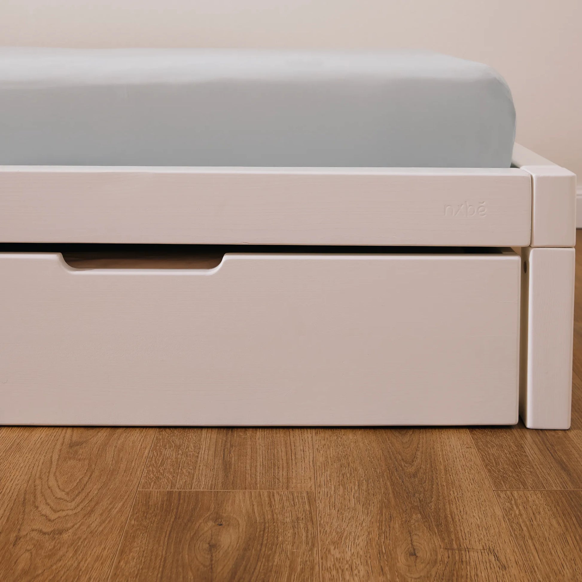 Der ausziehbare Bettkasten von nabè wurde so entwickelt, dass er jederzeit zur gesamten zero+ Bettlinie hinzugefügt werden kann.