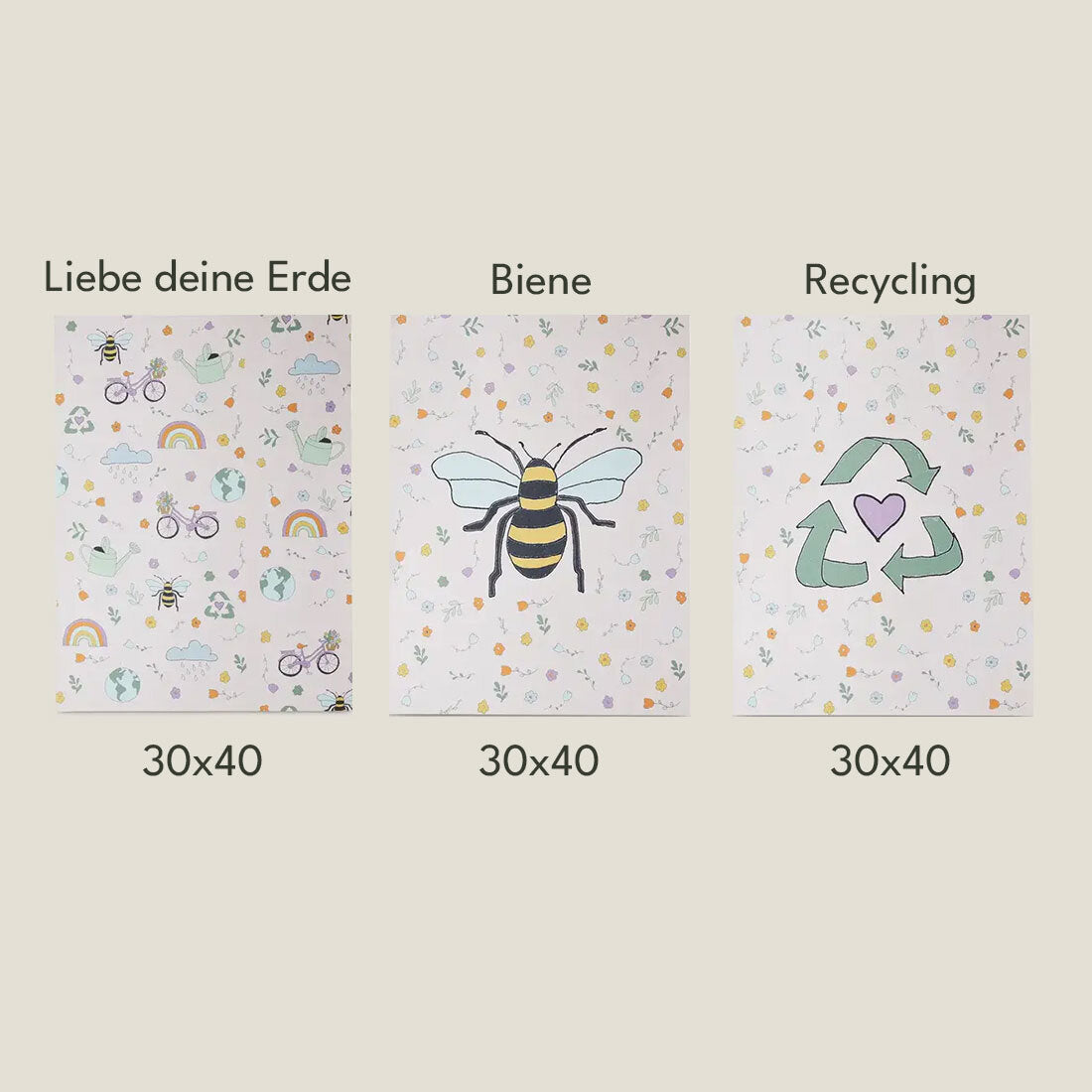 Die Prints „Liebe deinen Planeten“ haben wir gemeinsam mit einer talentierten Illustratorin aus der Toskana entworfen – ein liebevolles Geschenk aus Italien, das für eine ruhige und inspirierende Atmosphäre im Kinderzimmer sorgt.