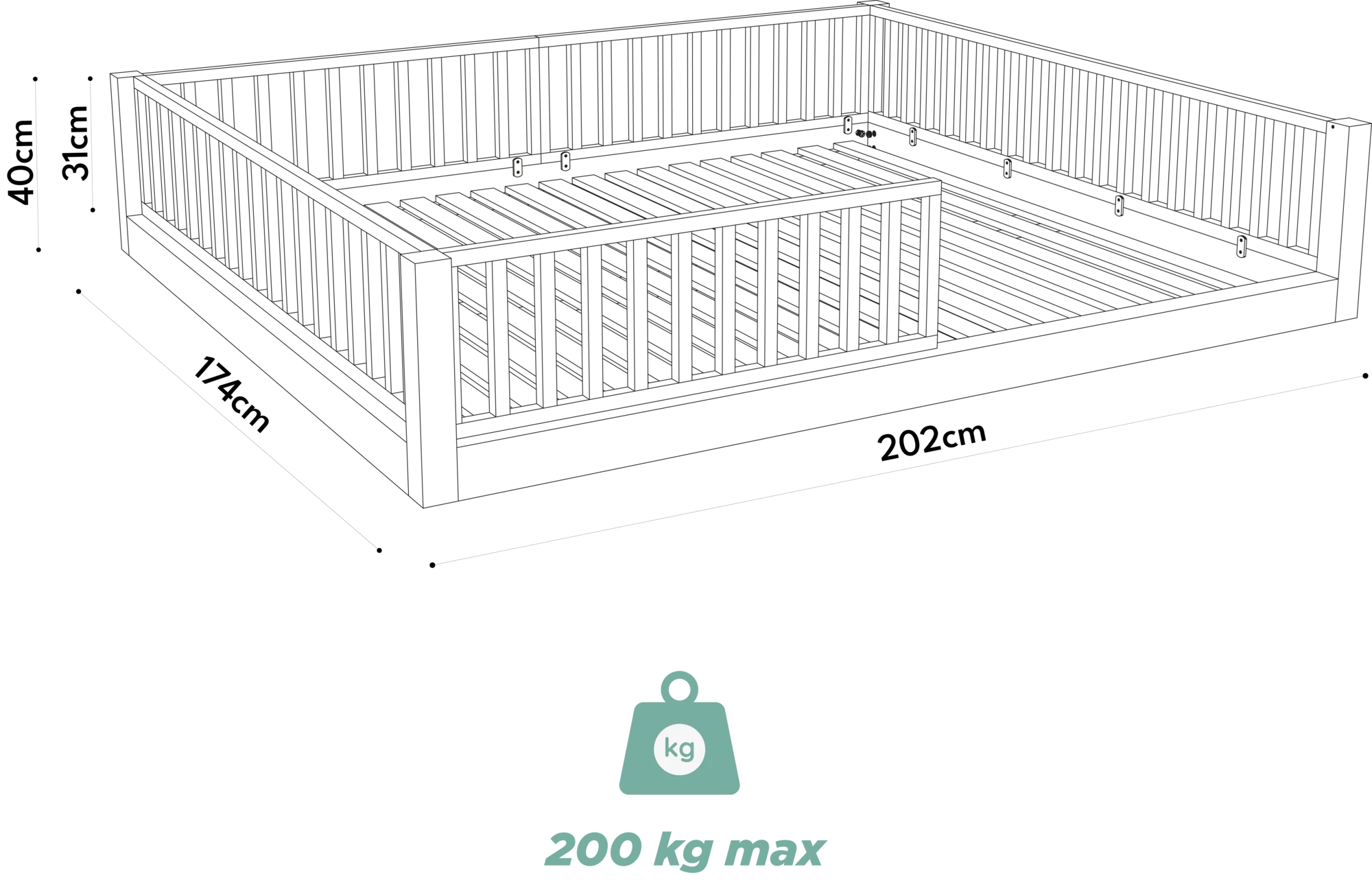 Das Bett wird zum Ort für Abenteuer und gemeinsame Spielmomente. Du kannst die Schutzgitter flexibel einsetzen und mit den Bettfüßen das Bett um 11 cm anheben.