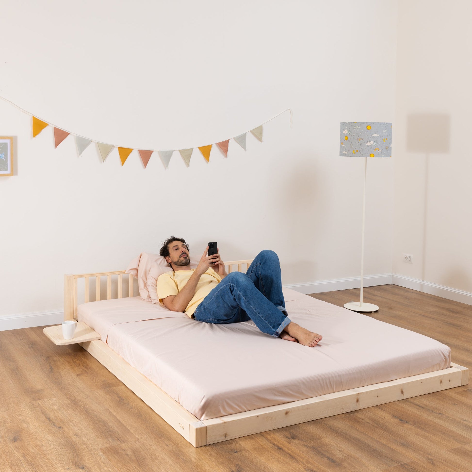 Das mitwachsende Bett zero+ Family bietet Kindern jeden Alters einen sicheren Schlafplatz. Direkt auf dem Boden im Montessori-Stil platziert und mit komplettem Rausfallschutz ausgestattet, sorgt es für maximale Sicherheit und Komfort.