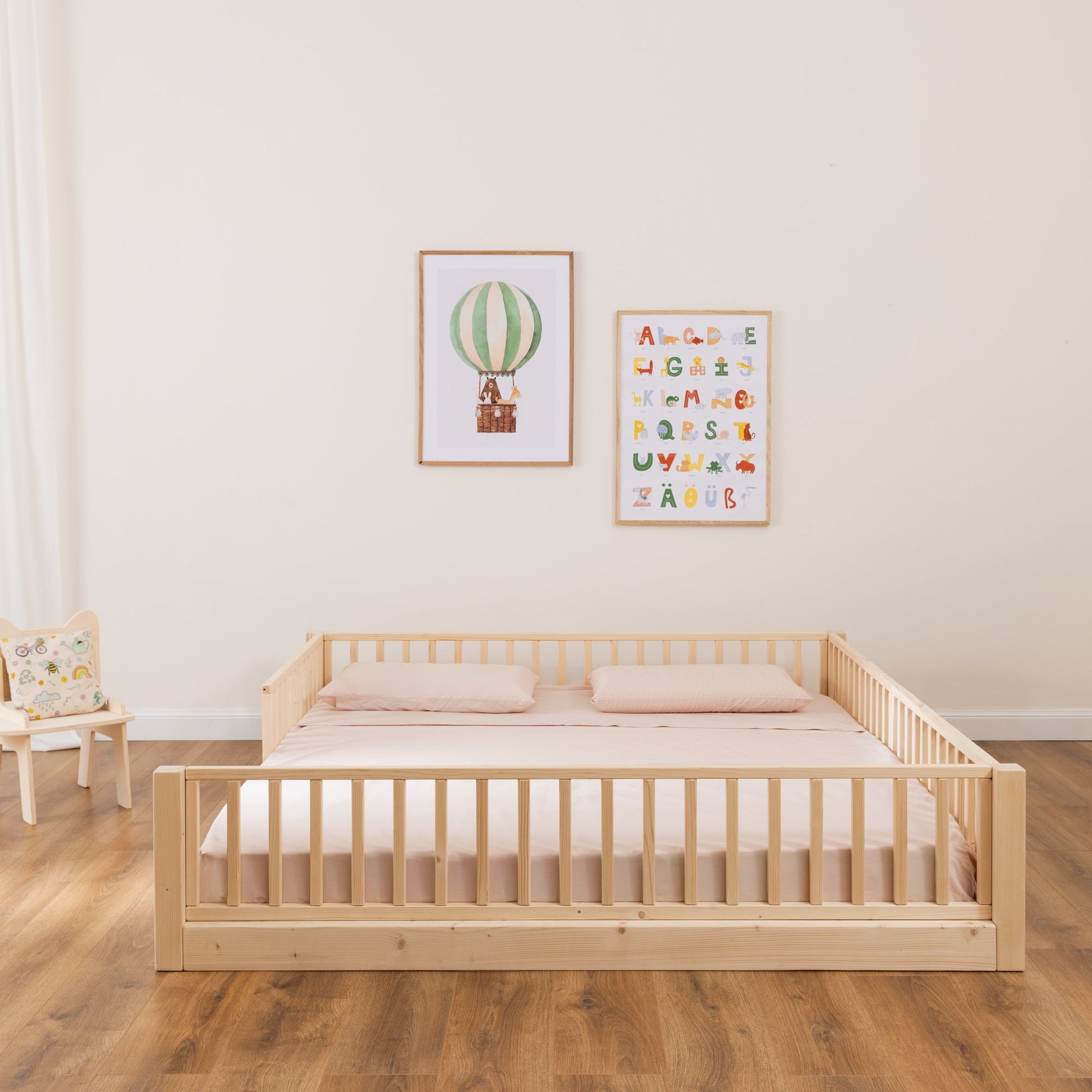 Es ist nachhaltig, duftet angenehm, verleiht dem Raum Wärme und ist gleichzeitig wunderschön anzusehen. Es passt sich jedem Kinderzimmer perfekt an und schafft eine Atmosphäre des Wohlbefindens und der Ruhe – zentrale Elemente für ein authentisches Montessori-Bett.