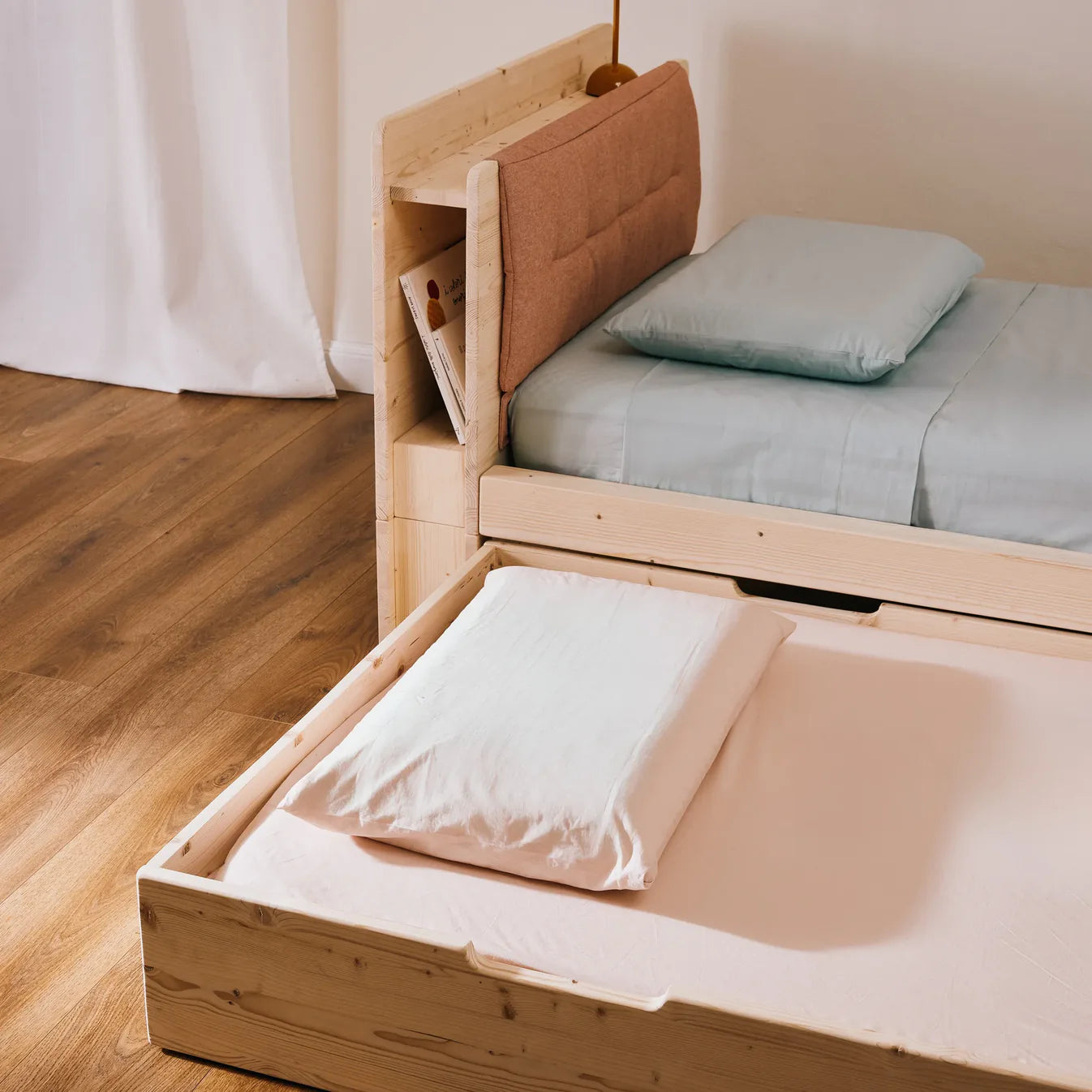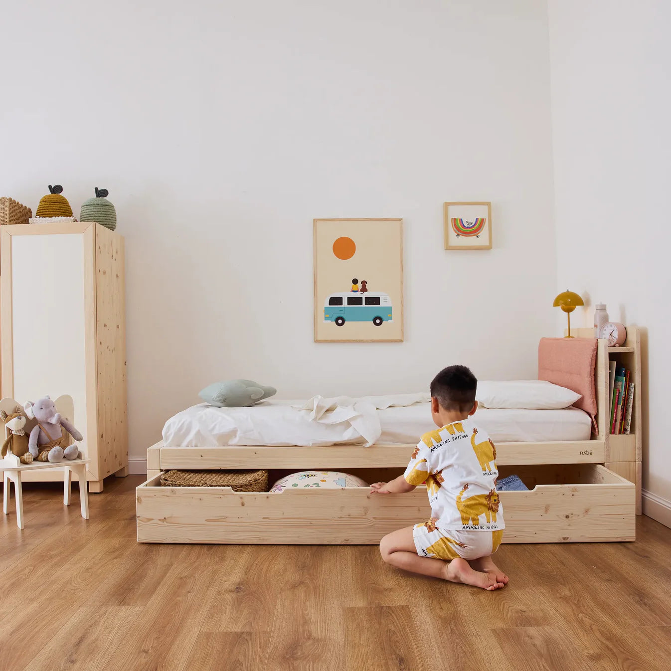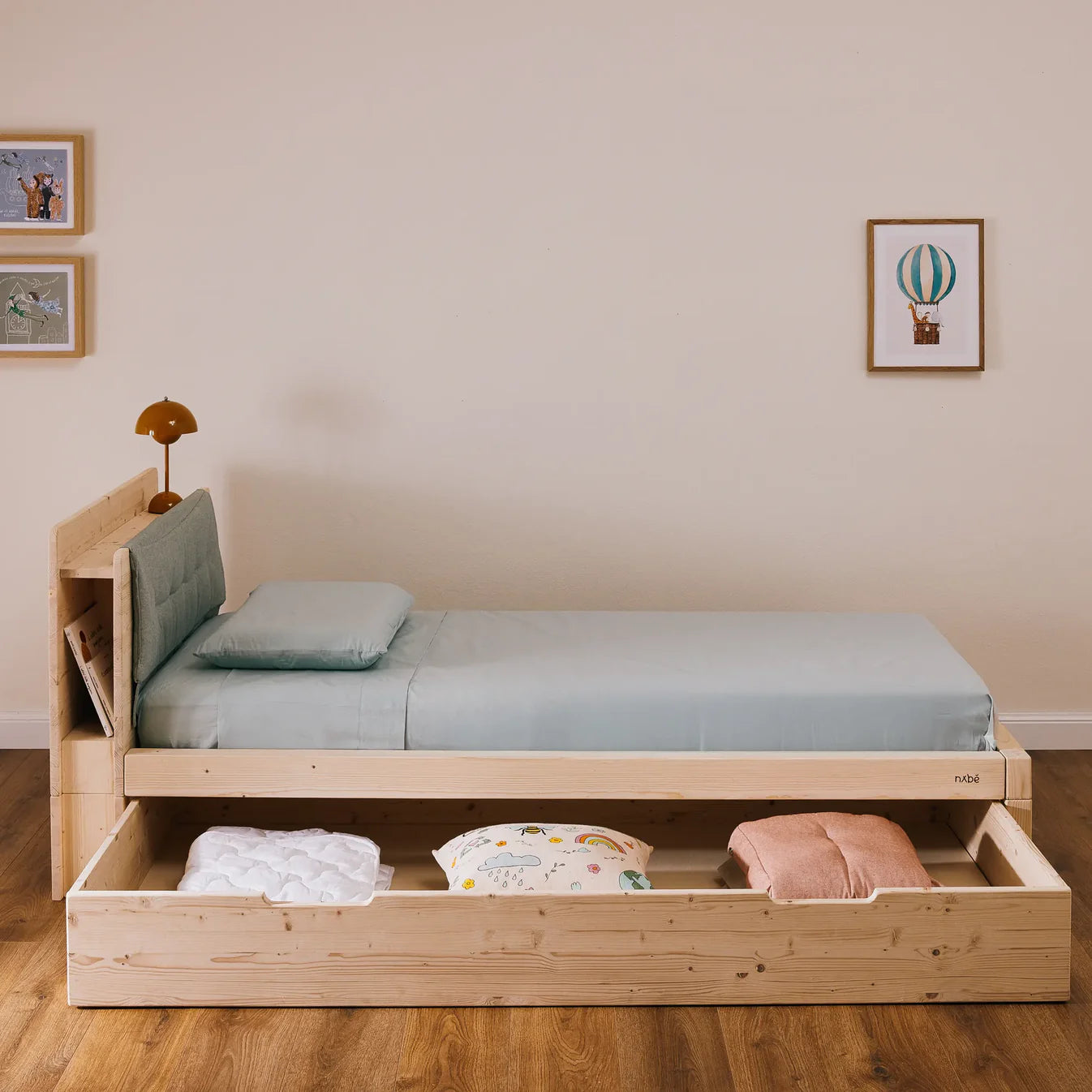 Der ausziehbare Bettkasten von nabè wurde so entwickelt, dass er jederzeit zur gesamten zero+ Bettlinie hinzugefügt werden kann.
